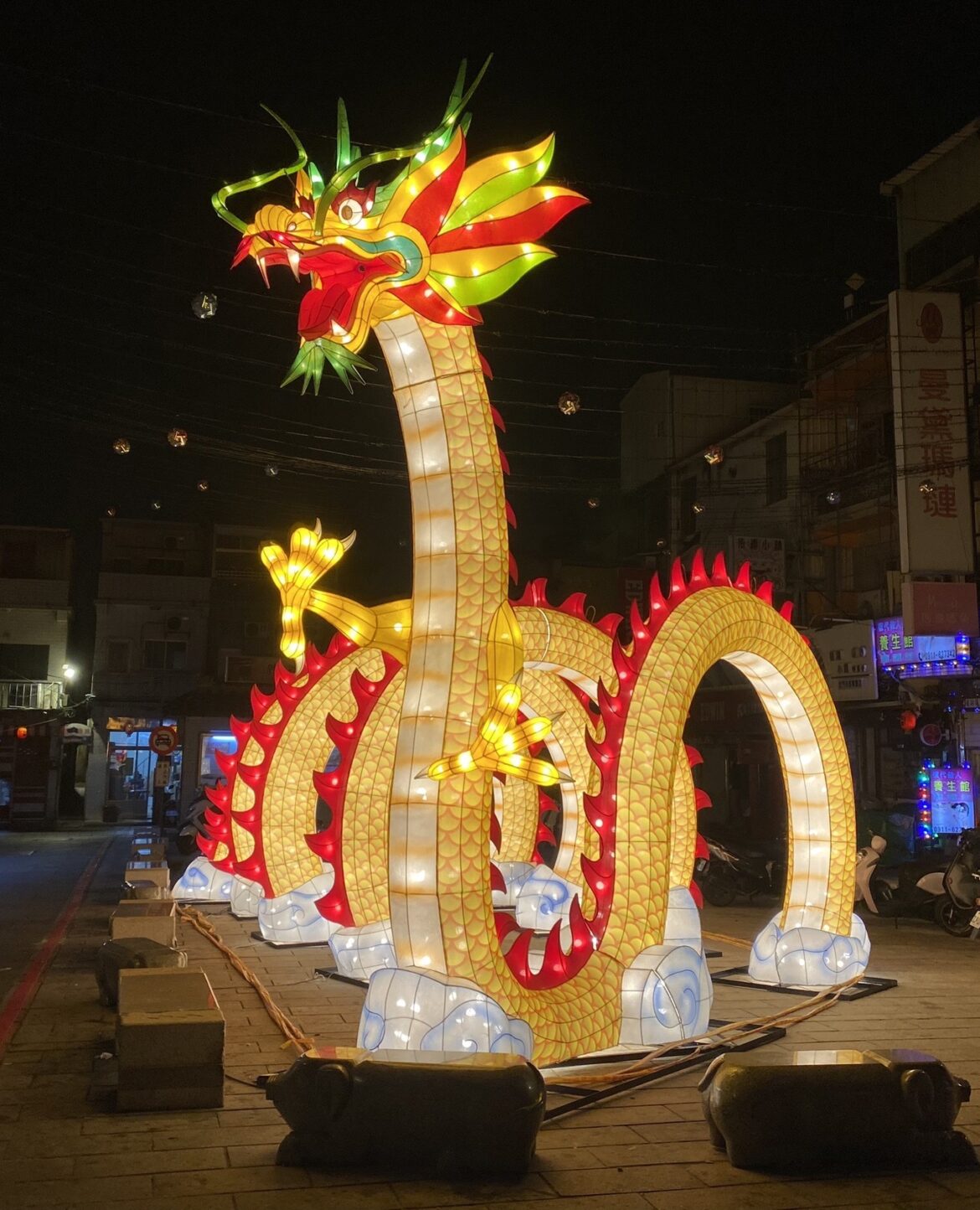 今年主燈「福氣滿龍」設於總兵署前廣場,是以金門高粱酒品牌之金龍為元素,設計龍門型燈組。賞燈民眾可走過龍門欣賞金龍抬頭,每半點金龍還會左右擺頭口吐霧,聲光效果十足!走進總兵署則可見多座可愛萌龍互動燈組,供民眾拍照打卡。轉進浯江街則可見光彩璀璨的天幕,以及邱良功古厝前喜氣洋洋的燈籠牆。夜遊後浦時,在城隍廟、東門代天府、西門外武廟、北門北鎮廟、南門天后宮則可見到各式祥龍獻瑞造型燈組。