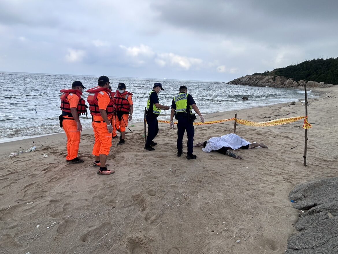 金門海巡表示:目前07時59分聯繫金湖分局,查詢近日無報案列管失蹤人口。8時,第九岸巡隊現場巡邏組人員已完成封所線拉設,並管制現場人車進出。08時23分, 金湖分局金湖分駐所警員等兩員抵達現場初步查詢身份。08時38分,第九岸巡隊司法小隊人員抵達現場協處。