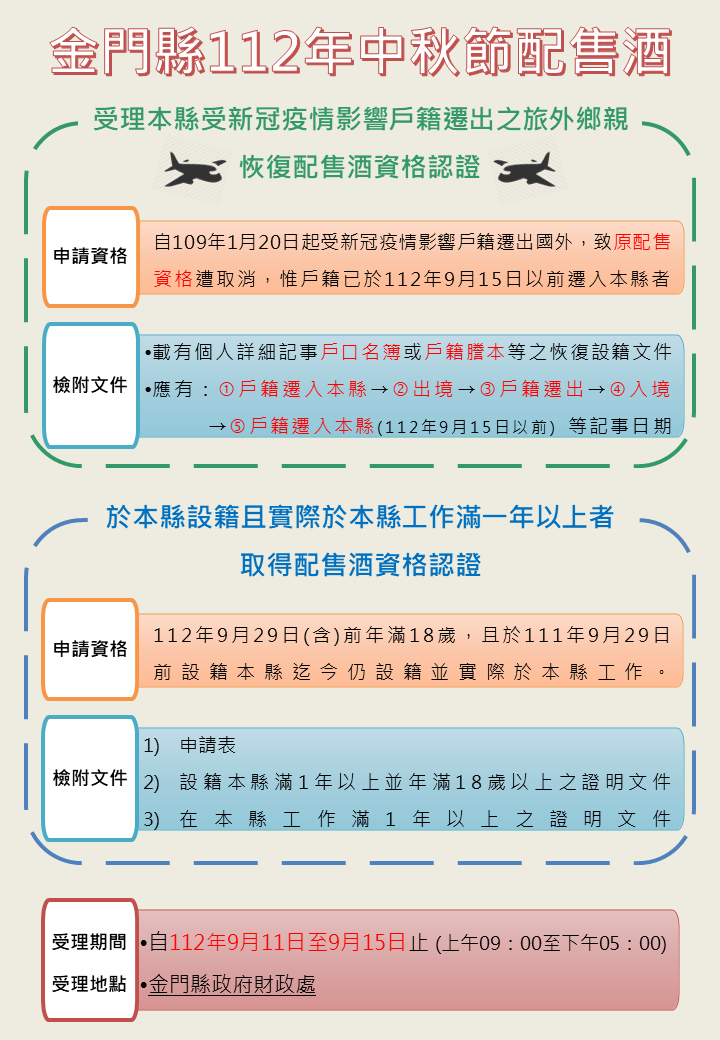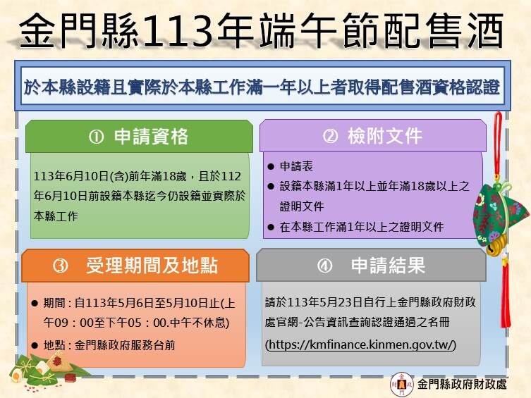 金門縣政府呼籲消費者,消費者選購酒類產品時應特別注意認明合法酒類產製業者及詳實的酒品標示事項,包括品名、產品種類、酒精成分、製造業者的名稱及地址、產製批號、警語標示等,亦可選擇取得「財政部優質酒類認證」之酒品,此類取得認證的酒品需通過嚴格的審查、產製過程的現場評核及酒品衛生檢驗等程序,經財政部優質酒類認證技術委員會審議通過,才會授予使用註冊的認證標誌,透過定期追蹤檢驗,嚴格把關認證酒品的衛生安全。