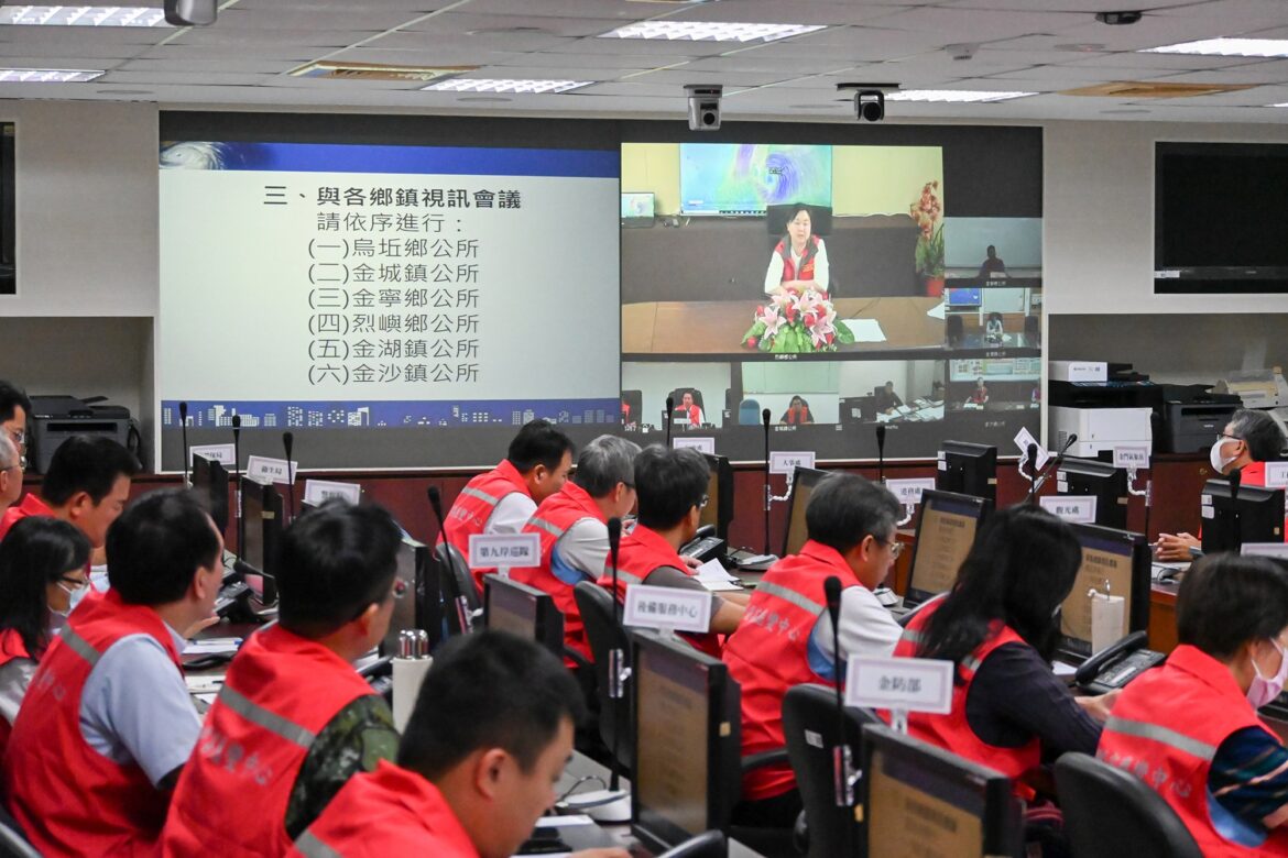 金門縣長主持康芮颱風災害應變中心一級開設工作會報,責成各單位全力執行防救災工作/圖金門縣政府提供