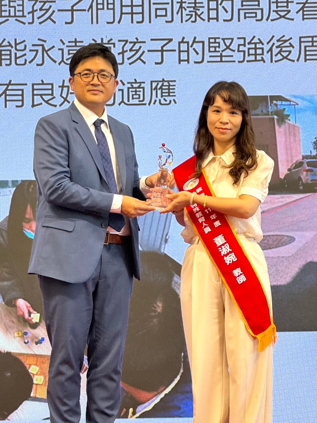 除了穿越「聰勤門」,中正國小也延續金門在地的傳統習俗,進行「滾紅蛋」入學古禮,陳為信校長親自錄製了教學影片,用道地的金門話,唸謠傳智慧: 「紅卵遨會正,才會得人疼;紅卵遨會順,讀書才會順;紅卵遨會直,寫字才會上逝。」這首古老卻雋永的閩南語歌謠,蘊含著長輩對孩子的殷切祝福,活動中,老師一邊帶領孩子吟誦閩南語唸謠,將紅蛋放在桌上輕輕滾動,寓意未來的求學之路能平順、安穩。透過校長溫暖的語調與身教,孩子們不僅學會了一項傳統習俗,更在入學第一天,體會到金門文化的底蘊與智慧傳承。