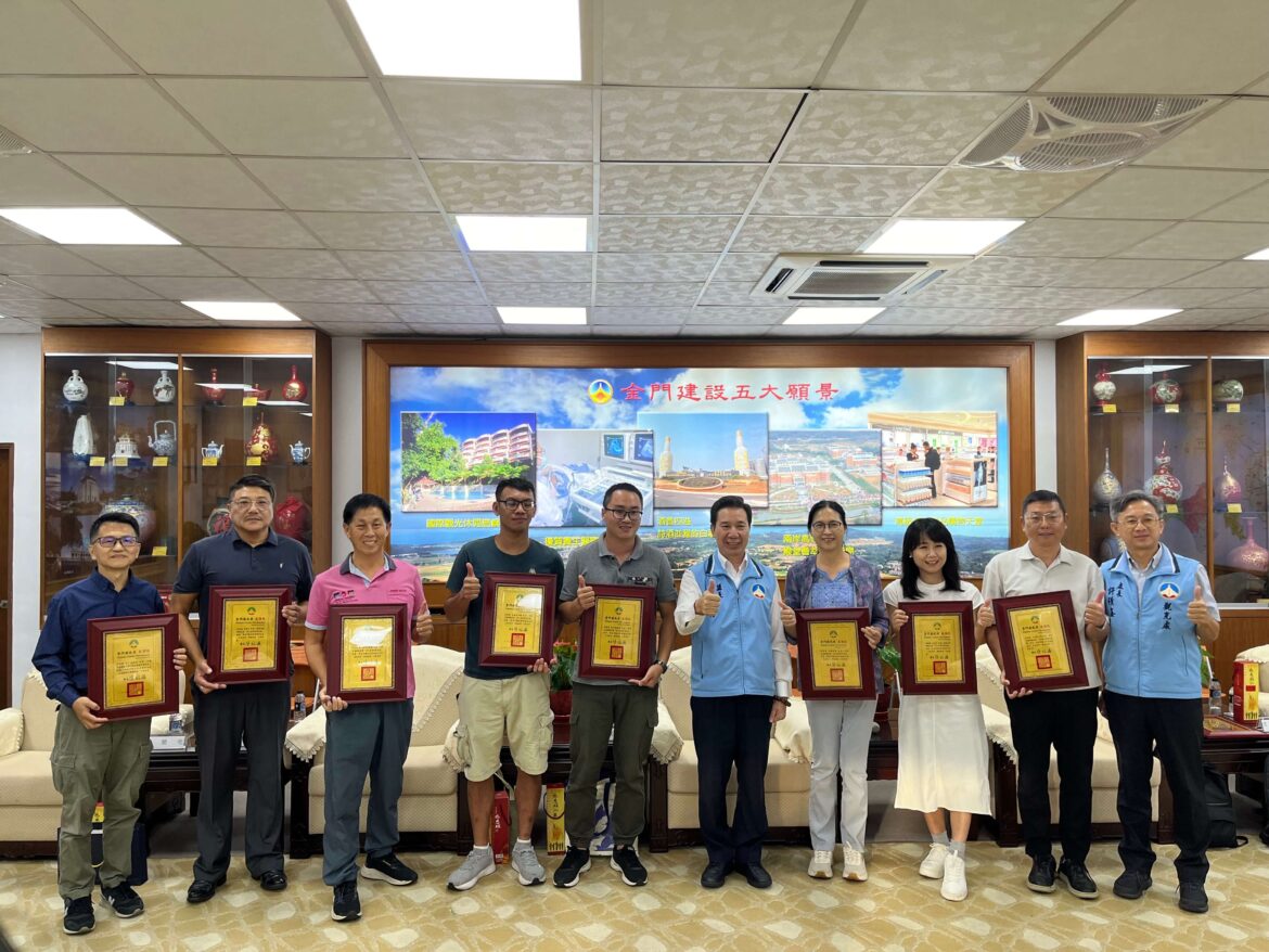 陳福海縣長親自接見8家獲獎業者,肯定業者的努力,並逐一傾聽業者心聲及看法,業者除了表達感謝縣府的支持,並提出回饋建議,例如老兵召集令活動增加充實性、民宿週邊環境綠美化、聚落指標系統加強,友善網路功能、租賃交通工具便捷性及環境友善度提升等,縣長進一步表示,肯定業者獲得中央獎項殊榮,縣府將積極並全力協助行銷,針對業者提供相對性的改善及媒體曝光,同時也關心業者經營的部份,希望業者與縣府一同攜手協助金門觀光,並責成觀光處廣納業者意見並於觀光活動提供業者相對性的支持。