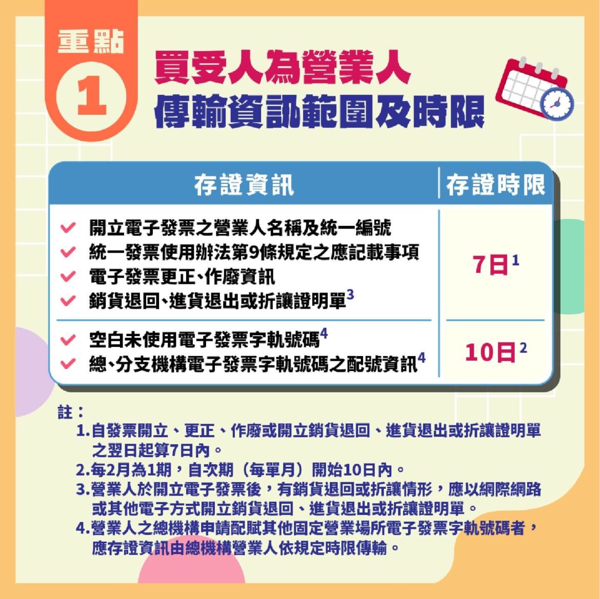 自114年1月1日起,營業人開立電子發票相關資訊應依規定時限據實傳輸存證,以免受罰
