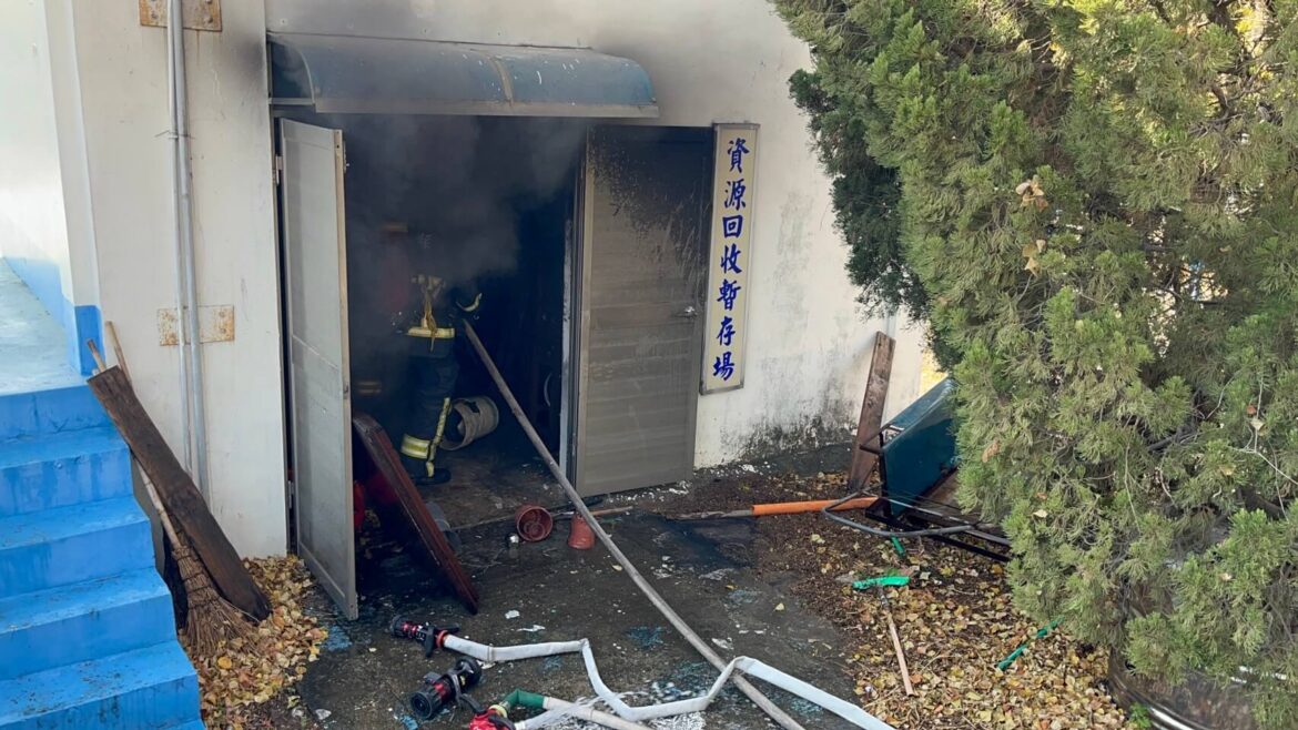 忠孝新邨籃球場司令台儲藏室驚傳火警,金消快速救援 /圖金門消防局提供