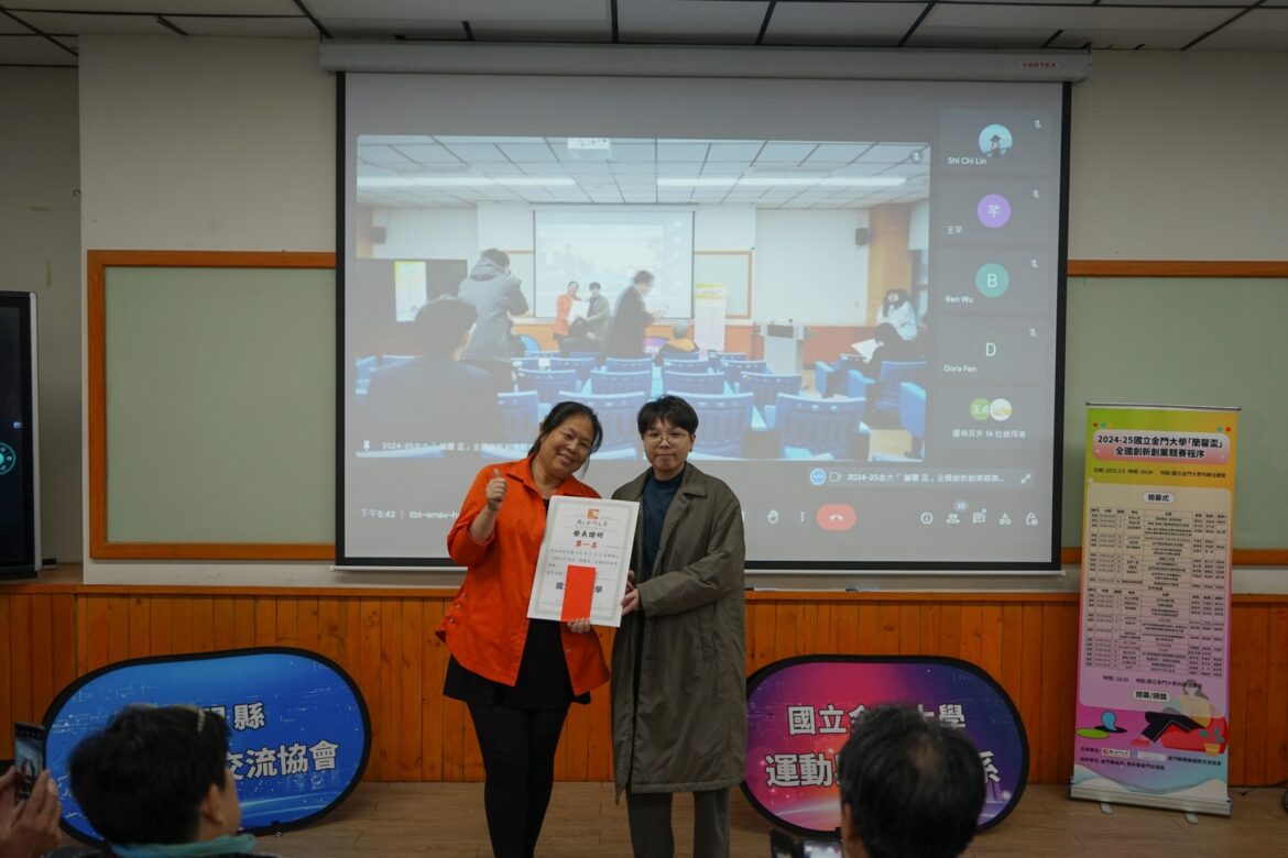 由國立金門大學承辦的2024-25「蘭馨盃」全國創新創業競賽,昨日進行決賽,由金大華文系麥勻瑄與東海大學洪于婷所提的「靈嶼—島嶼心靈療癒與創作旅程」獲得第一名。來自長庚大學的吳建鋒以「庚著風師爺去旅行」勇奪第二。有2隊成績相同,並列第三。有5隊獲得佳作。贊助這項競賽的金門縣蘭馨國際交流協會創會會長楊紫玫,對此次賽事盛況空前感到開心,期許此一賽事能定期舉辦,成為帶動金門創新發展的發動機。