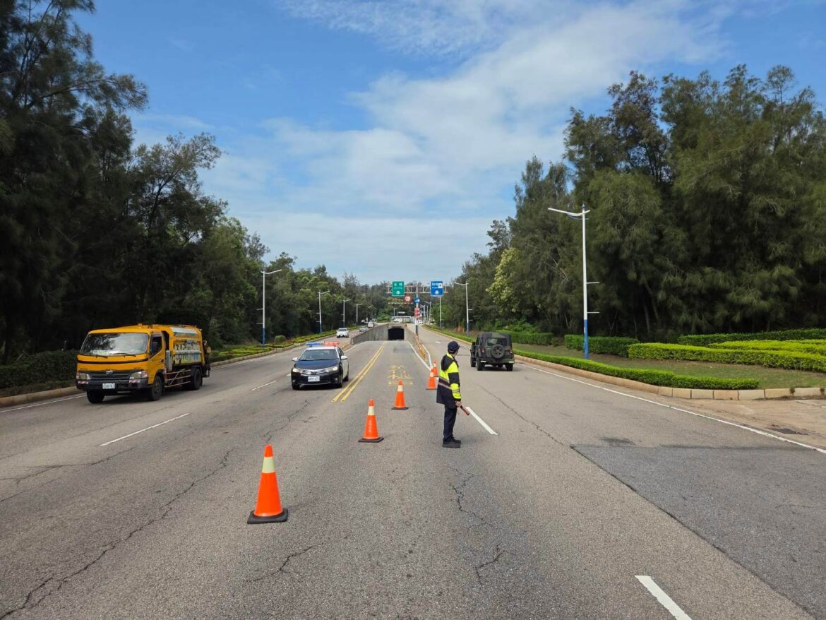 114年5月30日上午8時30分許,一部白色自小客車由金湖往金城方向行經機場地下道時,因不明原因車輛故障而停滯於上坡車道中,因機場地下道內為單向一車道且駕駛人不能緊急於車輛後方擺設交通故障警示標誌,導致車流受阻,對往來車輛造成影響。