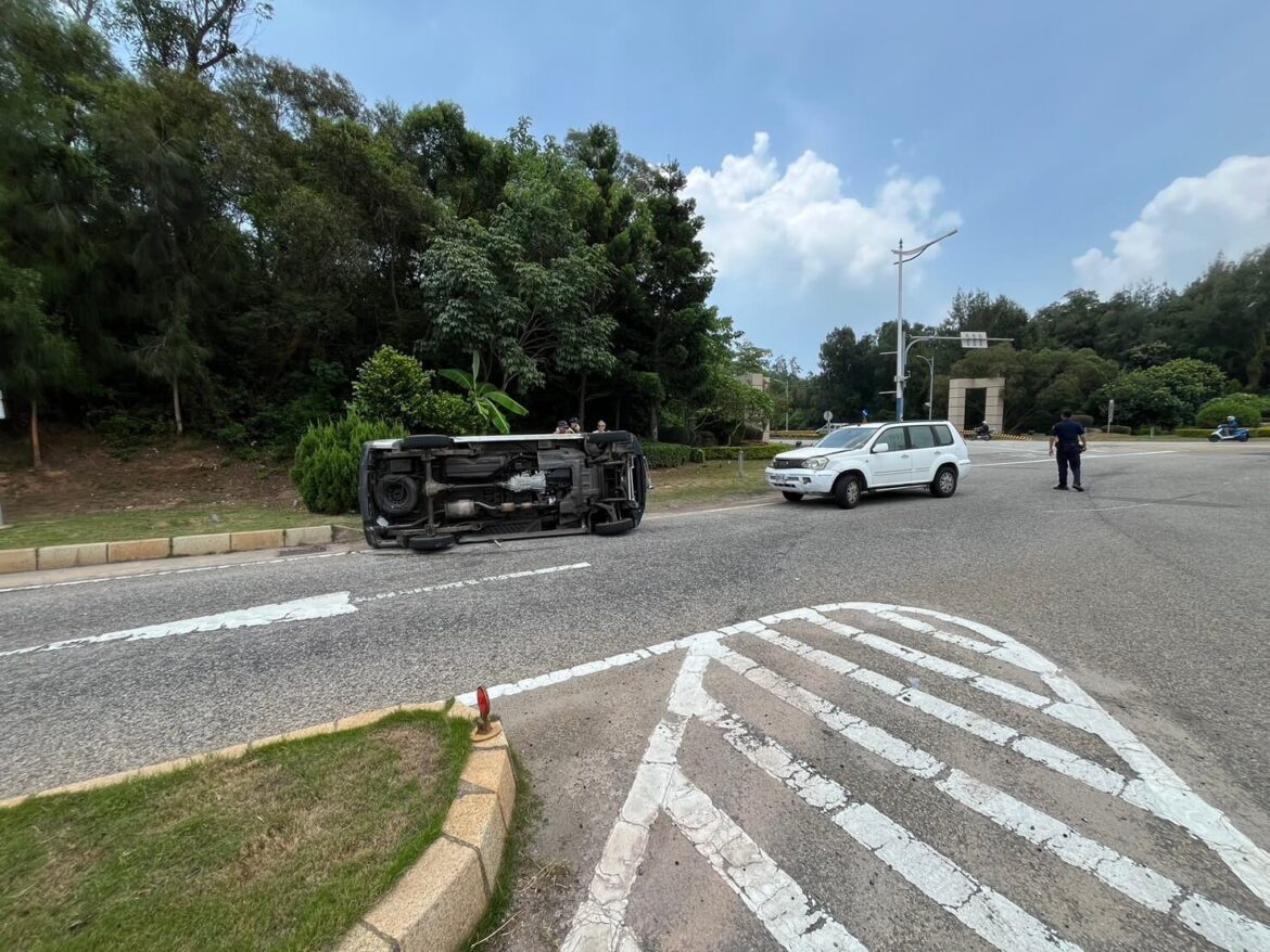 金門機場圓環未停讓導致車禍 , 114年7月18日上午10時50分許,洪姓民眾駕駛灰色自小客車,行經金湖鎮環島南路三段機場圓環時,遭王姓民眾駕駛白色自小客車,從尚義機場往圓環方向攔腰側撞翻覆。王民車輛是支道車(交岔路口設有「停」字標線),未禮讓幹道車先行,導致發生交通事故,洪姓駕駛左手骨折送醫,詳細肇事原因目前由警方調查中。