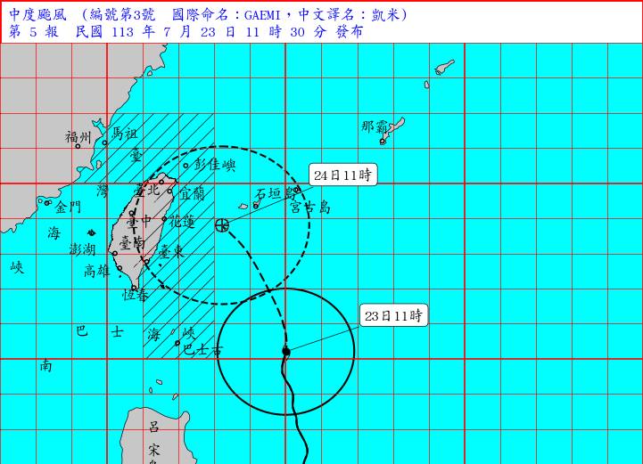 依據中央氣象局24日研判資料,今年度第03號颱風「凱米」(國際命名:GAEMI)位置於鵝鑾鼻東方海面上,以每小時約20公里速度,向北北西轉西北進行,近中心最大風速約40公尺/秒,瞬間最大陣風約50公尺/秒,相當於15級風。現階段路徑預判暴風圈有可能影響本縣,由於路徑為西北颱又適逢天文大潮期間,挾帶風雨不容小覷,縣秘書單位消防局審慎因應可能帶來之災害,於24日上午8時三級開設風災災害應變中心,整備各項防災工作,並通報工務處、建設處、林務所、台電及鄉鎮公所等防災單位,妥善整備救災人員與機具,以利隨時出動救災。