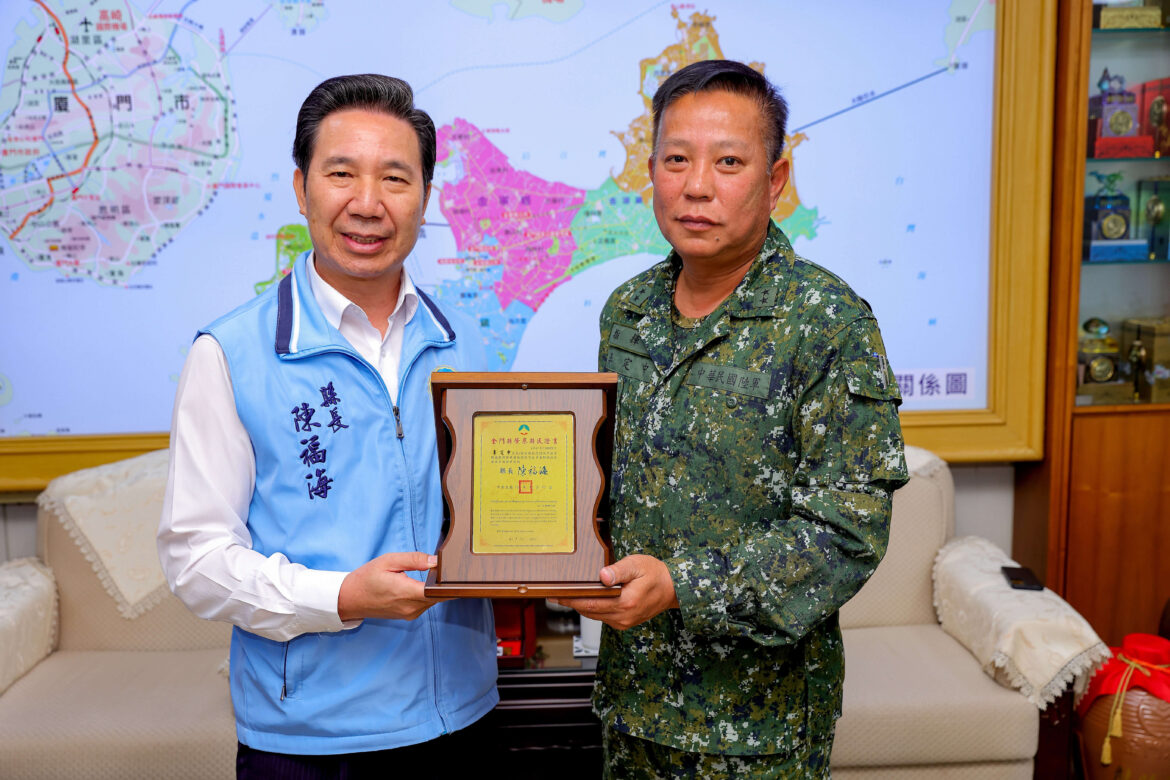 縣長陳福海特別肯定李指揮官對金門之貢獻,積極任事,克盡職守、執行成果豐碩,功不可沒,獲贈本縣榮譽縣民誠屬實至名歸。未來將與黃指揮官繼續保持軍民合作夥伴關係,一起讓金門這塊土地更美好。