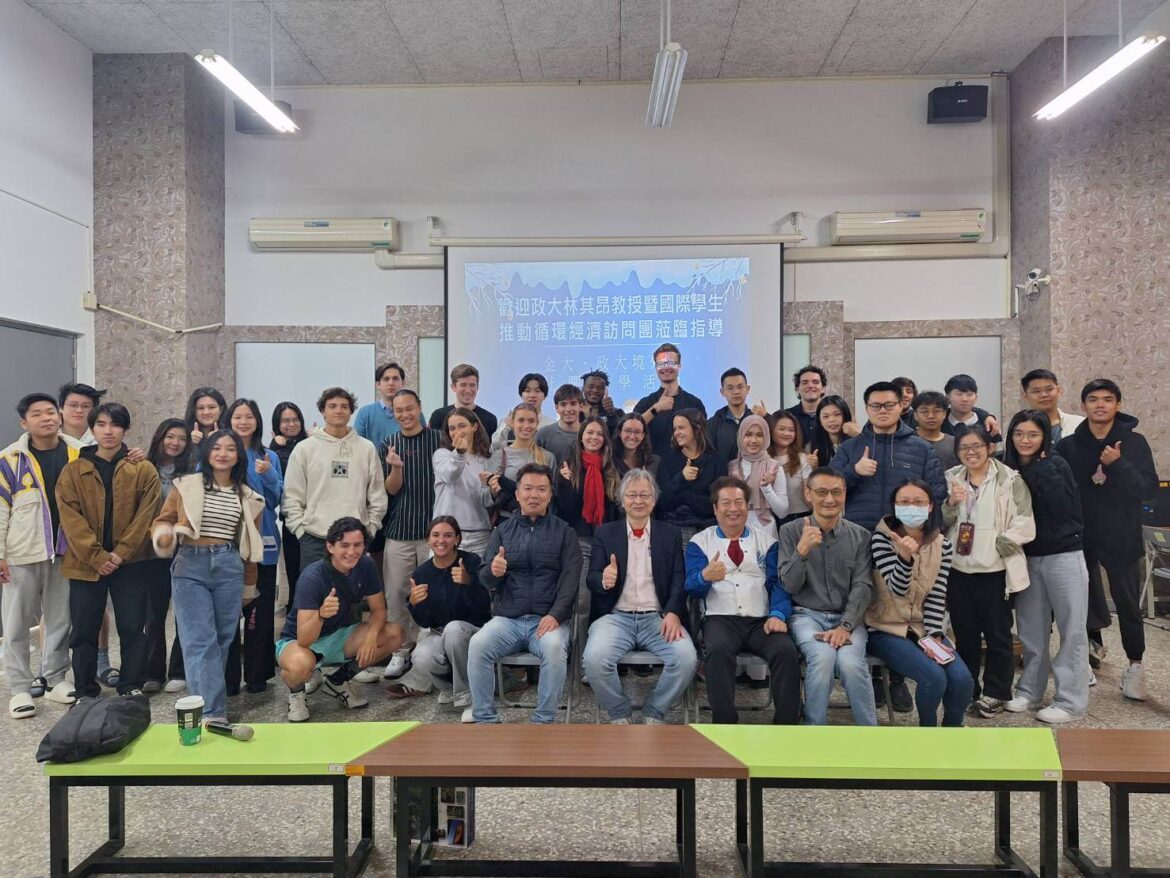 政大循環經濟課程境外學生一行三十餘人昨日蒞臨金大交流,由學務處董燊教授代表出面接待。/圖金大提供