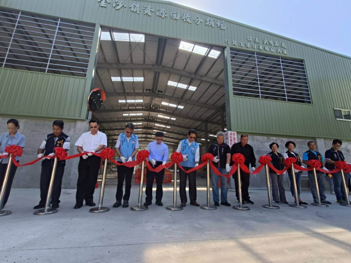 為優化作業環境,改善原有資源回收物貯存空間不足問題,金沙鎮公所經爭取環境部經費及編列配合款,活用隊部原有空間,新建資源回收場,12日上午舉辦啟用典禮,在資源循環署林健三副署長、鎮長吳有家、秘書長謝世傑及金沙鎮民代表會周水土主席佳賓等剪綵下正式啟用,場區啟用後可讓第一線作業人員以安全、方便又簡單明確的方式,迅速完成資源回收細分類工作。