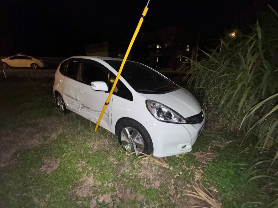 金門成功村黑白車擦撞 白車衝入草叢/圖金湖分局提供