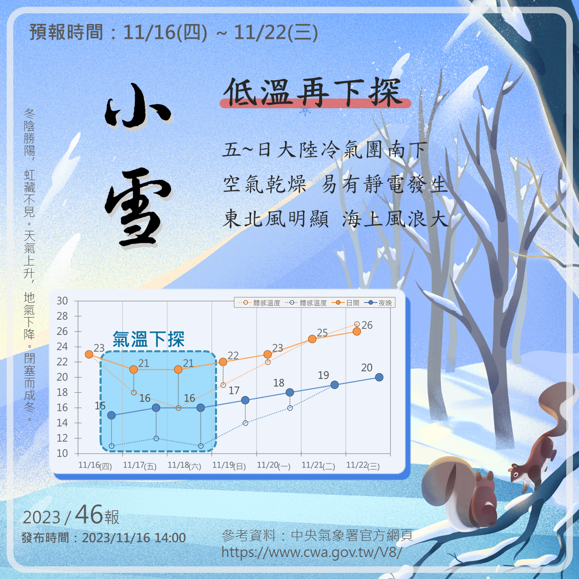 本週氣溫都明顯往上升,夜間低溫也都在19~20度以上,相信已經有人拿出電風扇了。要提醒大家的是這週天氣較濕熱,南風天多少有些反潮的現象,要多注意家中易發霉的地方要加強除溼。