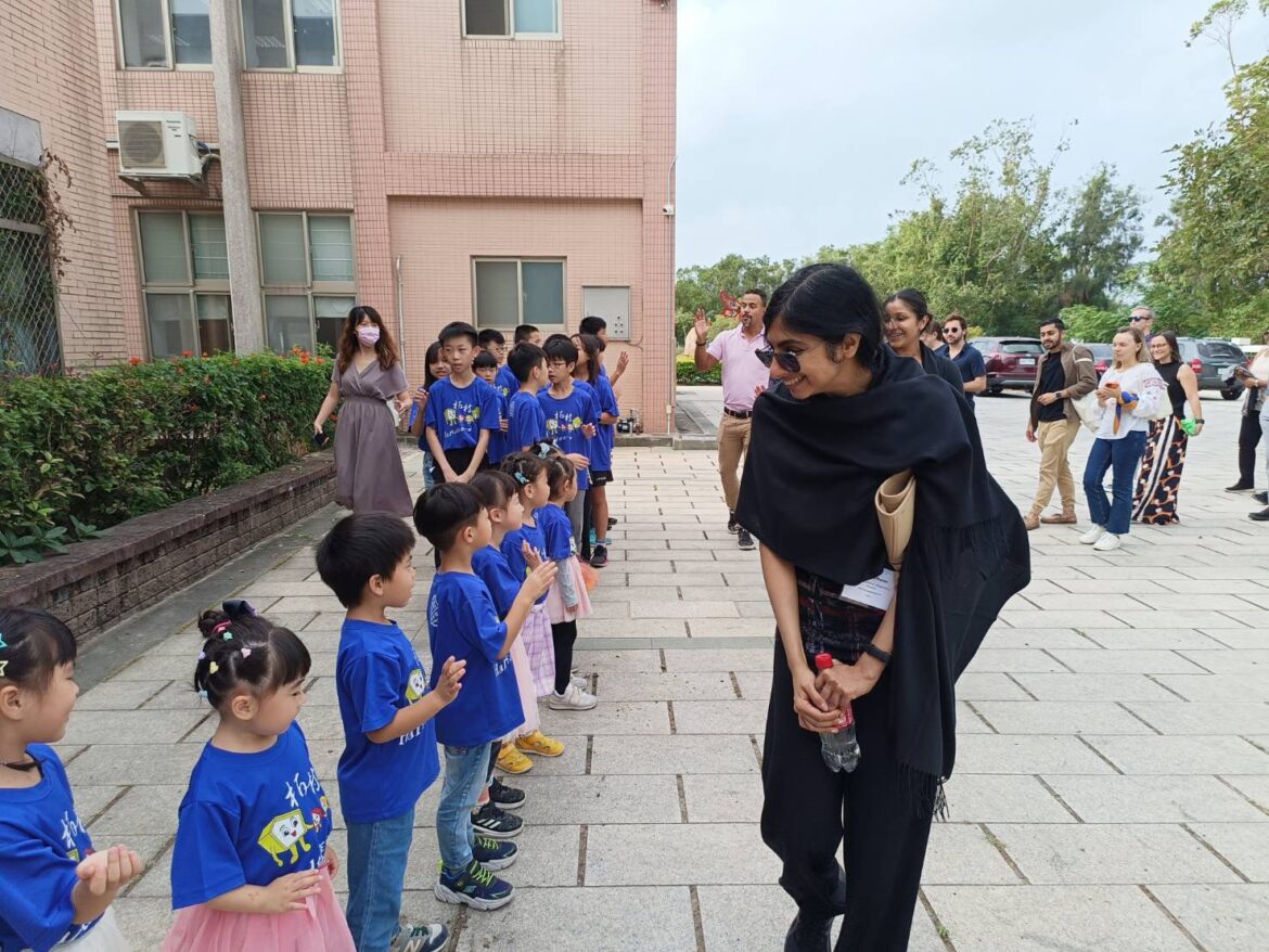 柏村國小幼兒園小朋友列隊熱烈歡迎。「大西洋理事會」各國青年領袖/圖葉建雄攝