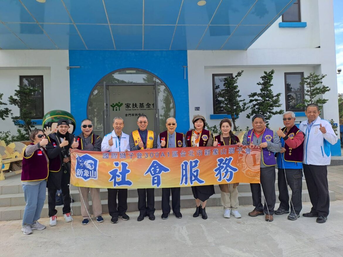 國際獅子會300A1區台北市新象山獅子會於二十九日早上十時,藉由三天兩夜金門公益之旅,一行成員由新象山獅子會會長陳有昇的聯繫下,前往金門家扶中心進行社會服務活動,關懷金門地區的弱勢兒童和家庭,同行成員共計捐出八萬餘元,並由前中正國小陳坤乾校長贈送墨寶一幅,表達對家扶中心扶幼工作的支持和肯定。此次跨海的慈善活動,由家扶中心扶幼主委楊肅謙代表家扶中心,接受此次獅兄和獅姐們的愛心,並獻上誠摯的感激之意。家扶中心主任李桂平並介紹不同於本島,離島特殊的兒童扶助工作,以及家扶中心兒童扶幼館的功能。