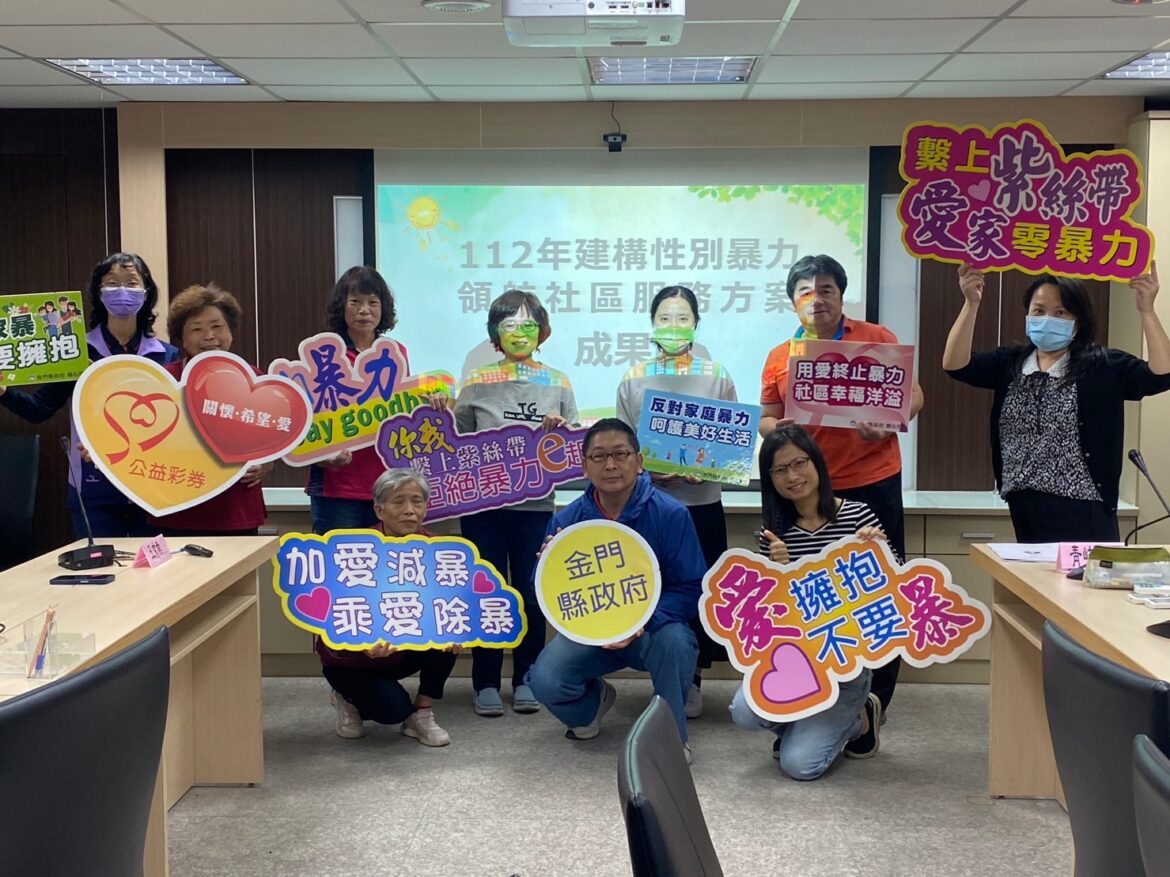 金門縣家庭暴力暨性侵害防治中心為推動性別暴力初級預防工作,在金門縣政府第三會議室,辦理防暴社區成果展,邀集縣內辦理防暴工作的社區團體與宣講師共同參與,橫向深化公私部門合作機制,以創新內涵精進相關防暴工作與宣導服務。參與執行計畫之社區為烈嶼鄉青岐社區發展協會、金寧鄉盤山村社區發展協會及金城鎮賢聚社區發展協會,特別邀請高階宣講師黃明芳開場表演,透過活潑創意的防暴操宣導家暴防治,讓社區間彼此互相交流與觀摩學習。