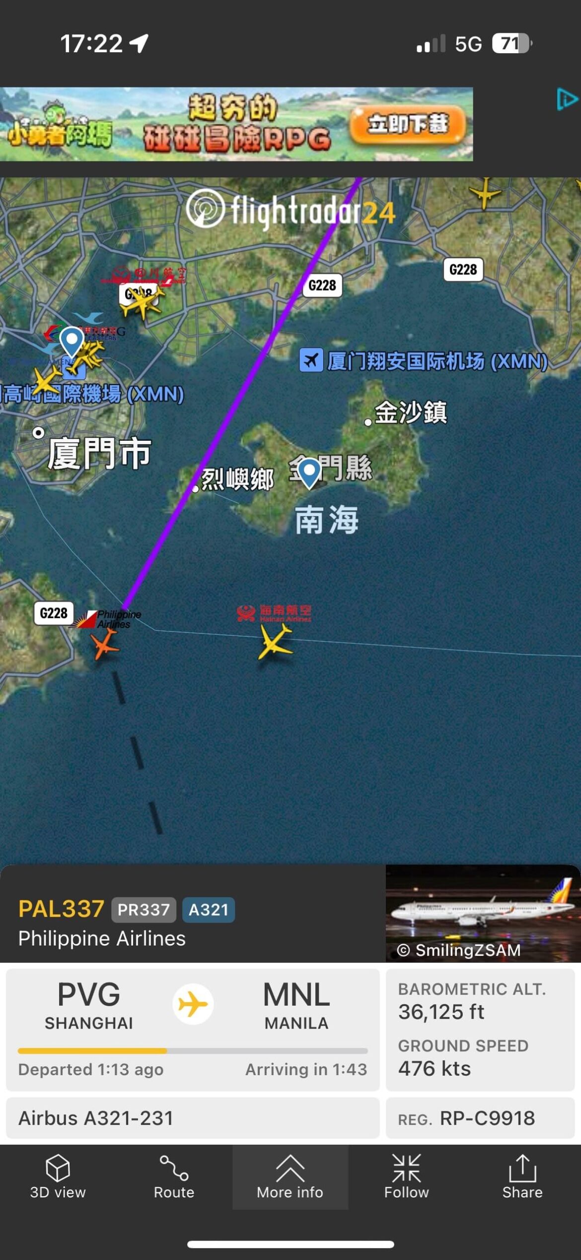 經觀察下午數架民航機飛越金門及馬祖附近及上空時,高度未進入我方所轄金門及馬祖終端管制區域,尚未影響我方民航機飛航,我方航管單位將持續注意,確保我方民航機飛航安全。另相關資訊均轉知我軍方單位。
