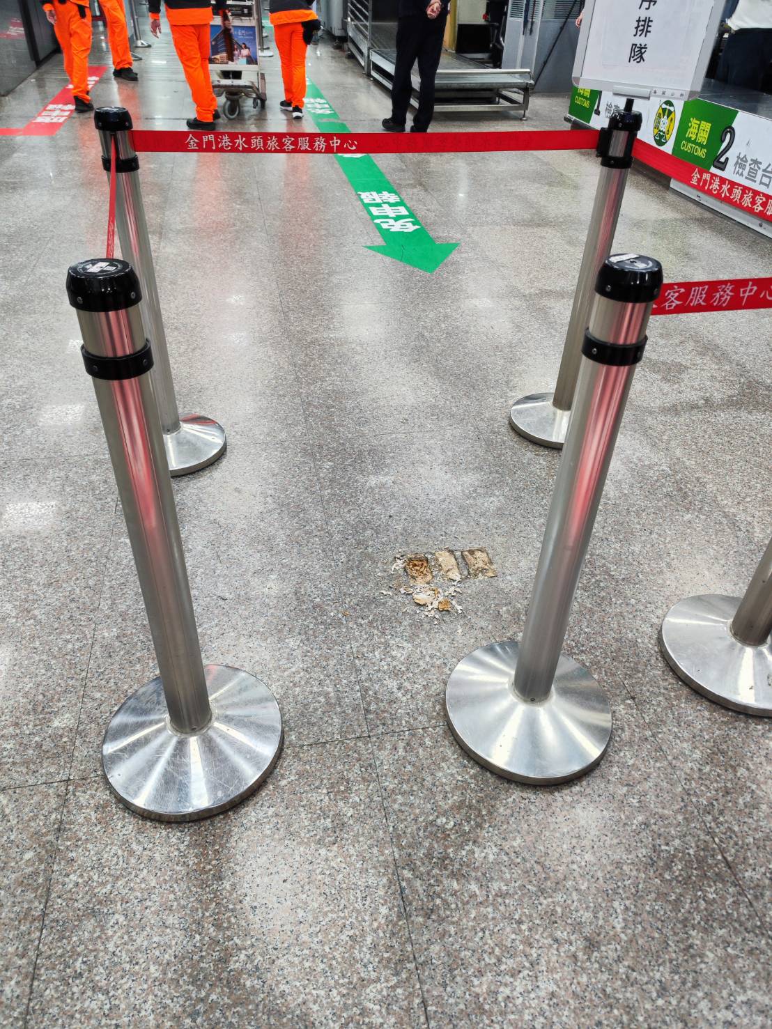 金門國境之門小三通水頭港9日末班船班,入境大廳驚傳火警,讓入境旅客嚇壞了!小三通旅客在18:00入境時在入境大廳看到地上突然冒煙,嚇得趕緊通報海關人員, 金門港務消防隊水頭分隊接獲通報後緊急出動出勤人車:消防水箱車一台 分隊長莊濠綱帶領 隊員董育義 許承揚至現場搶救, 到達現場發現起火地點為入境大廳X光機外地板插座電線短路發出火苗,現場冒煙,抵達時已經由港務處人員自行撲滅,後續將由水電師傅檢修處理。