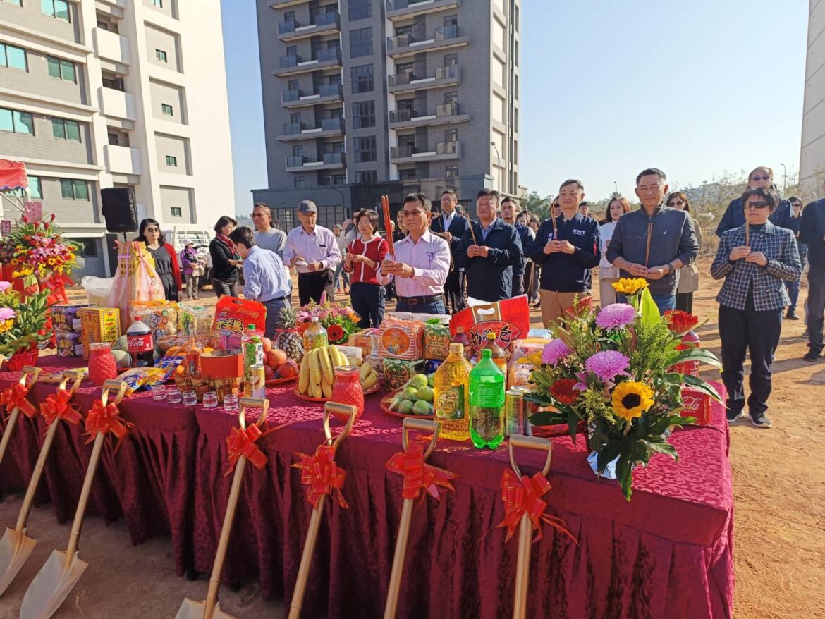 金門大橋新地標-金門書院,15日上午09時舉行動土典禮,基地面積1450平方米,建案規劃為十四層樓共計114戶之住商集合大樓,期望為大橋重劃區帶來新氣象,為週邊注入新活力、促進地方繁榮與帶動經濟發展。/圖葉建雄攝