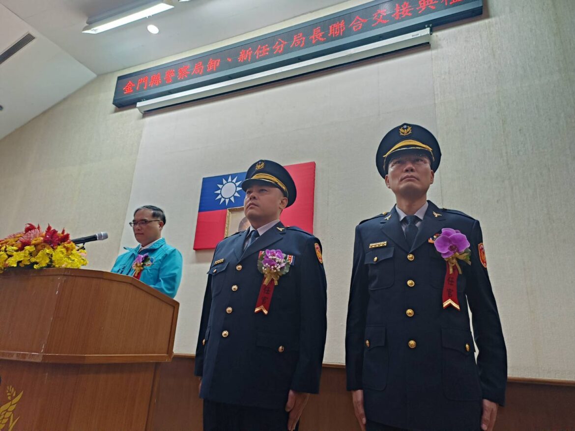 為應警察勤、業務需要,內政部警政署就適任人選之品操學能、工作績效,及依單位衡平、職期與地區調任等職務遷調原則,並考量現職人員眷居處所等因素通盤檢討調整本縣重要警職職務。金門縣警察局重要警職異動人員為:金城分局分局長由新北市政府警察局板橋分局偵查隊隊長陳盈元接任及金湖分局分局長由臺中市政府警察局第三分局偵查隊隊長楊志源接任,並於本縣警察局4樓視聽室辦理分局長聯合交接典禮,由李副縣長文良主持,於典禮會中介紹新任官予與會貴賓認識。