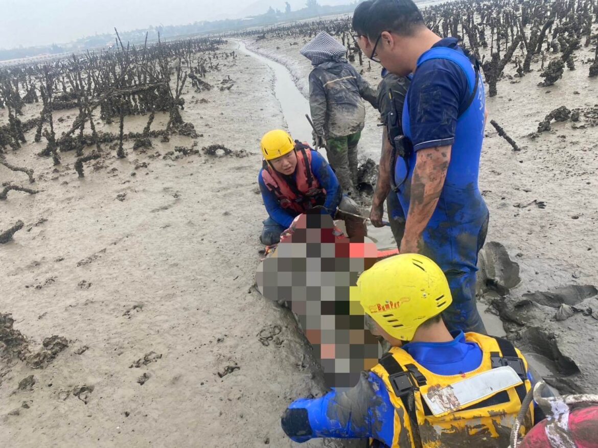 婦人採蚵陷泥及胸 勇消迅速成功救援 挽回民眾寶貴生命/圖金門消防局提供