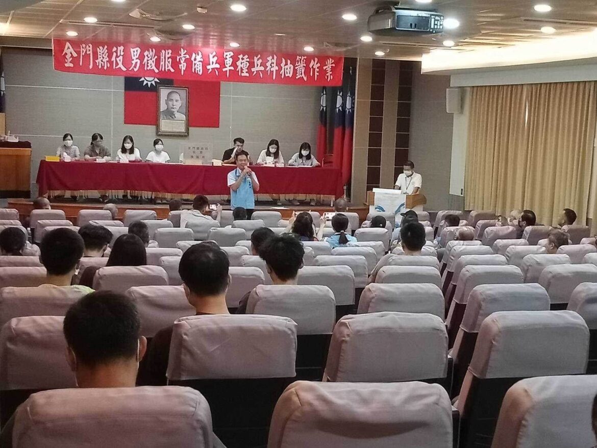 金門全縣役男徵服常備兵軍種兵科(集中)抽籤作業,於9月13日上午10點在縣府多媒體簡報室舉行,民政處長陳金增表示,本次應參加抽籤役男共有93人,1人歸類為「航海類」故逕列「海軍艦艇兵」;其餘92人均屬「通用類」,計為陸軍81支、海軍艦艇兵2支、海軍陸戰隊6支,空軍3支,共92支籤票。