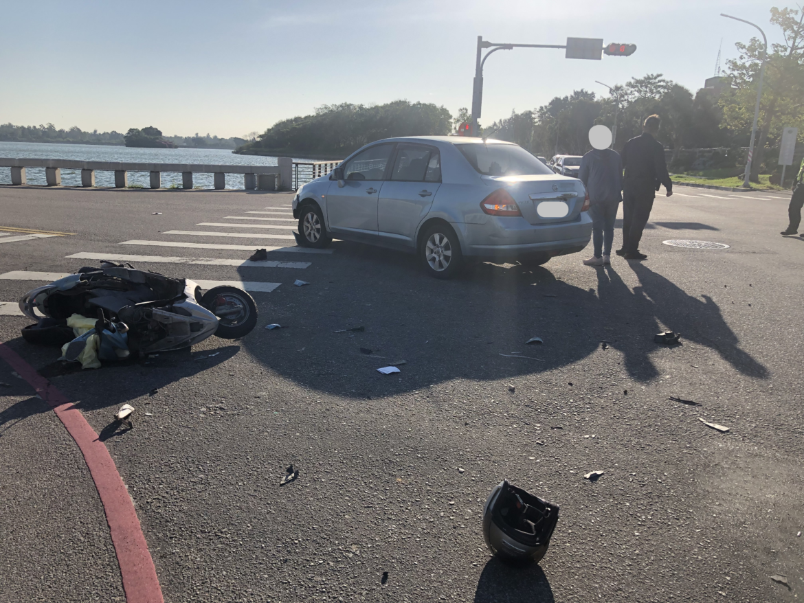 (31)日上午7時37分左右,黃姓民眾(女、67年次)駕駛藍色自用小客車,沿金湖鎮太湖路2段由新市圓環往金湖國中方向行駛,至士校路口欲左轉時,碰撞對向由李姓民眾(男、37年次)騎乘之普通重型機車,造成李民頭部撕裂傷,送衛福部金門醫院就醫,汽車駕駛黃民則未受傷。