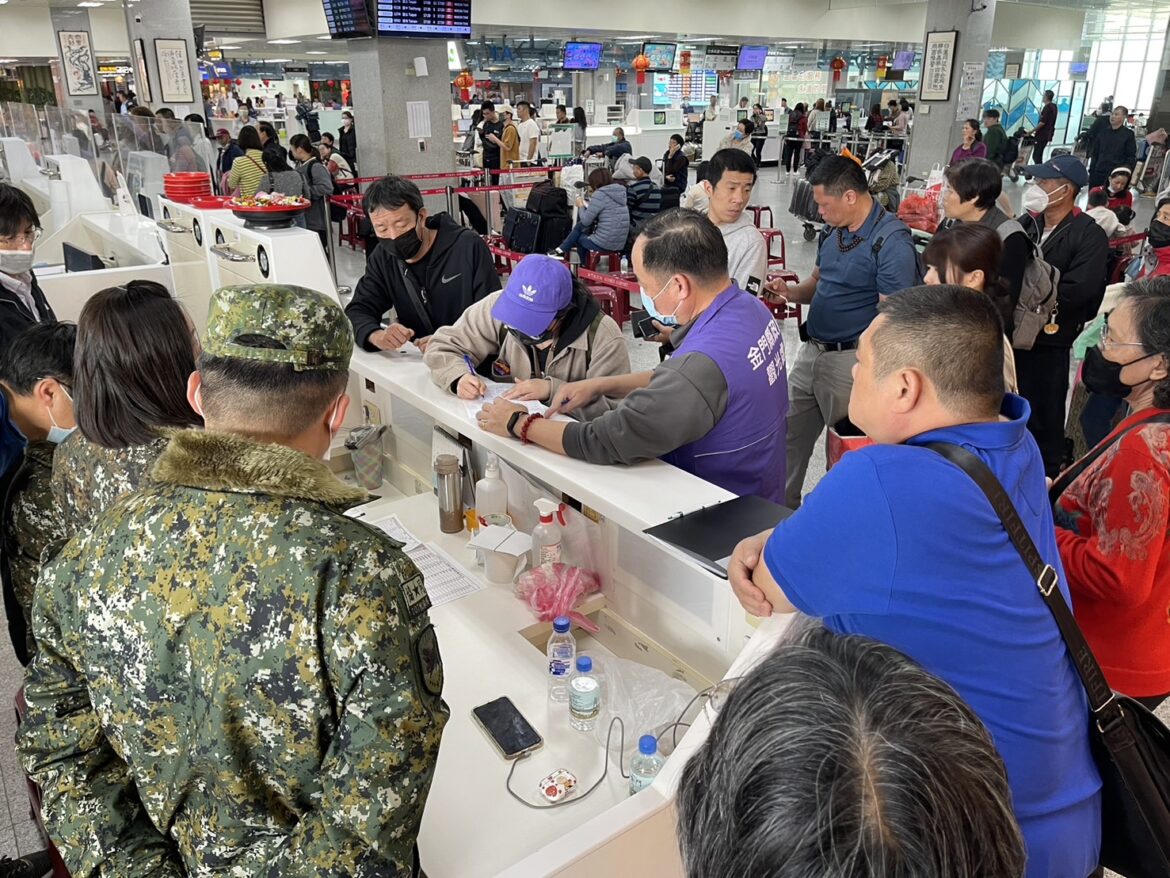開工上班日,金門航空站今日仍出現返台人潮,縣籍立委陳玉珍再協調國防部支援1架次軍機協助疏運。/圖陳玉珍服務處提供