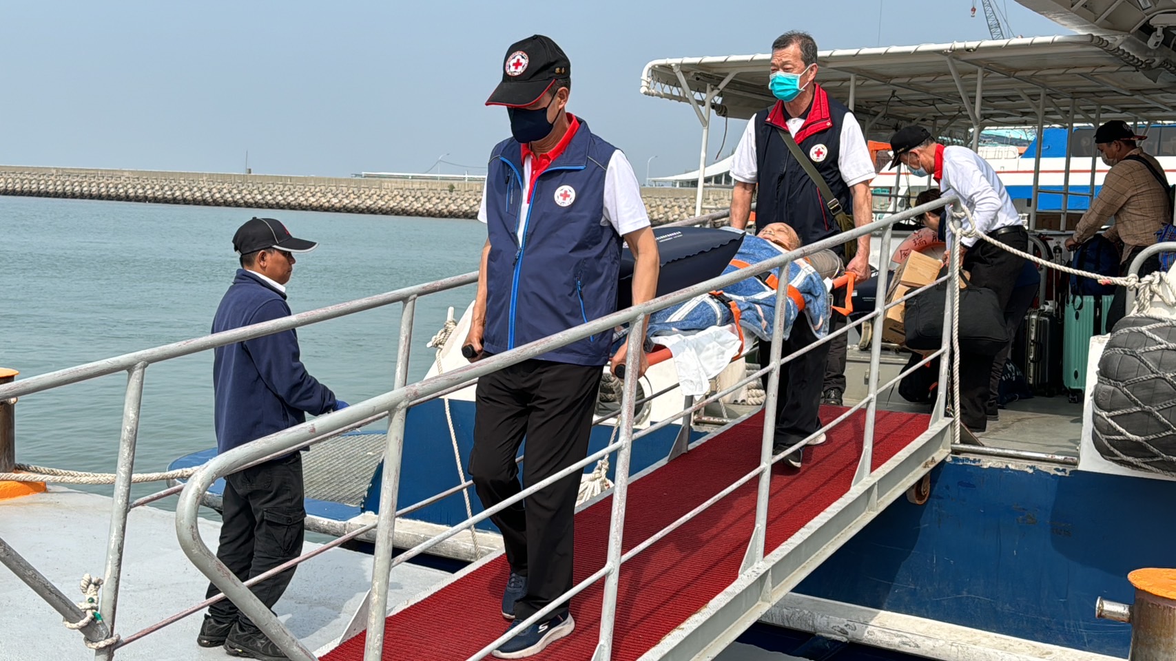 洪國正說,今天金門紅會也到碼頭了解緊急醫療救護SOP是否安全、便利,以及是否有需檢討改進之處,同時也感謝在緊急醫療救護過程中,兩岸公部門在行政上的支持與配合,還有福州台辦針對醫藥費以及綠色通道行政作業所提供的協助。/圖葉建雄攝