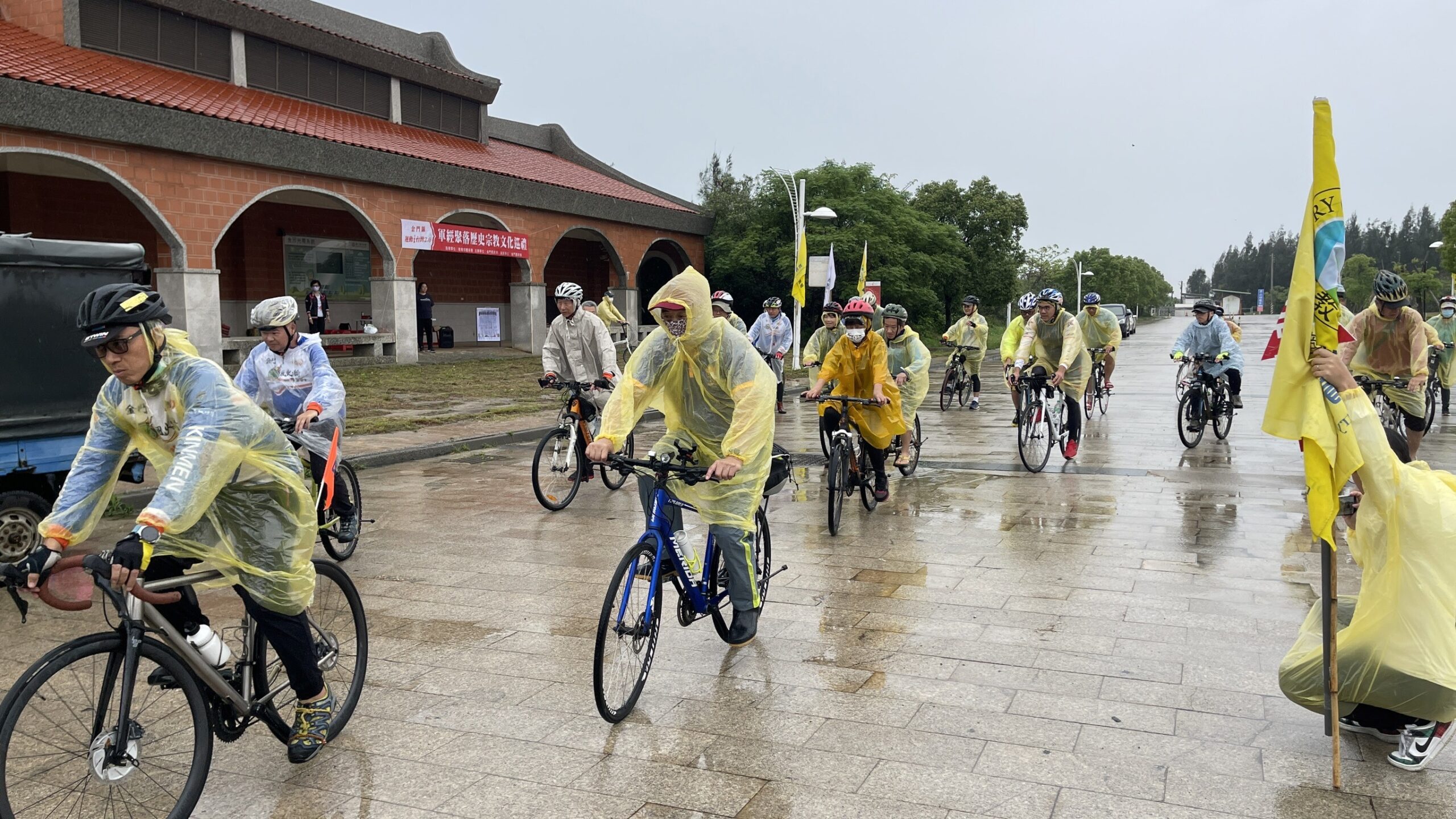 (28)日,金沙鎮環島自行車路線上,113年運動i 台灣2.0金門縣軍經聚落歷史宗教文化巡禮-金沙秘境自行車之旅隆重舉行。儘管天空飄著細雨,但金門體育會細心準備的雨衣讓參與民眾可以安心享受這場別開生面的活動。