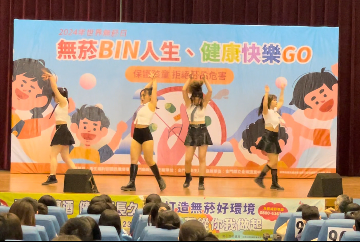 為響應5月31日世界無菸日,金門縣衛生局於5月29日上午假金城國中藝文中心舉辦113年世界無菸日《無菸 BIN人生、健康快樂go》宣導活動,由衛生局李副局長及金城國中謝志偉校長帶領現場青少年朋友一同宣讀拒菸檳宣言,共同倡議「我不吸菸、不嚼檳榔;我拒菸檳,我驕傲」;活動邀請國內百萬網紅,人氣女神、動漫甜心歌手miss 布丁及DJ Mis HSU 絮兩位擔任拒菸大使,現場透過miss 布丁、DJ Mis HSU 絮、魔術互動秀及金門大學熱舞社等表演團體,以High翻全場的歌聲及熱力四射的舞蹈,向金城國中學子宣導拒絕菸檳,迎向健康。