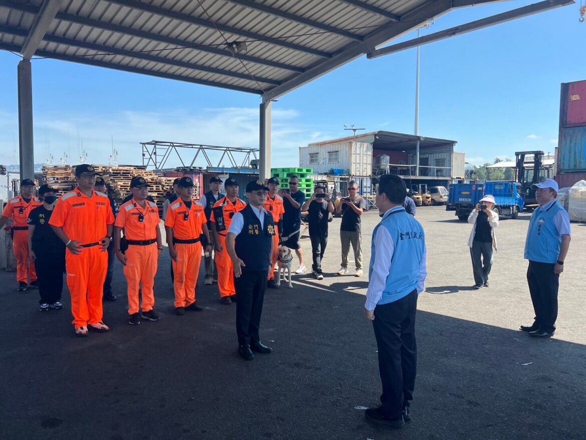 縣警局局長陳錦文貫徹縣長陳福海一貫秉持對毒品零容忍之立場,加強全面打擊毒品,阻絕毒品於島外,結合緝毒犬於港口、機場、貨運站等人流、物流入轄時進行通關偵檢,以實現「無毒家園」之願景,指示縣警局刑事警察大隊協調海洋委員會海巡署金馬澎分屬第九岸巡隊配合派遣緝毒犬支援港口毒品查緝任務,以具體行動打擊毒品運輸,展現共同維護金門治安的決心。