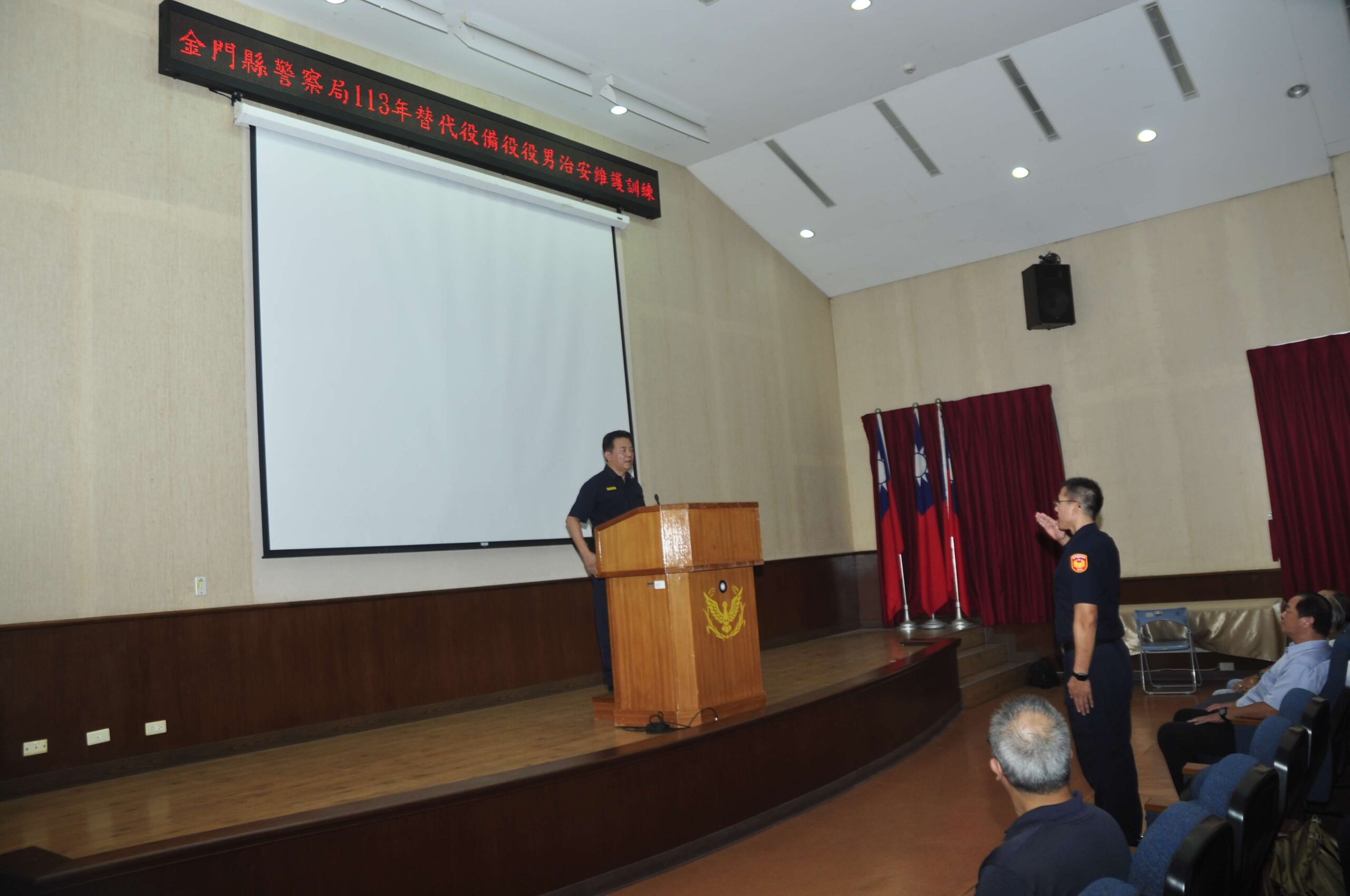 金門縣警察局局長陳錦文特別到場加油勉勵,期許役男能藉此次召集,熟悉各項民防技能,以提升支援民防團隊能力及強化全社會防衛韌性,匯聚及建立民間防衛力量與共識,以達協助維持社會民生基本運作之重責。