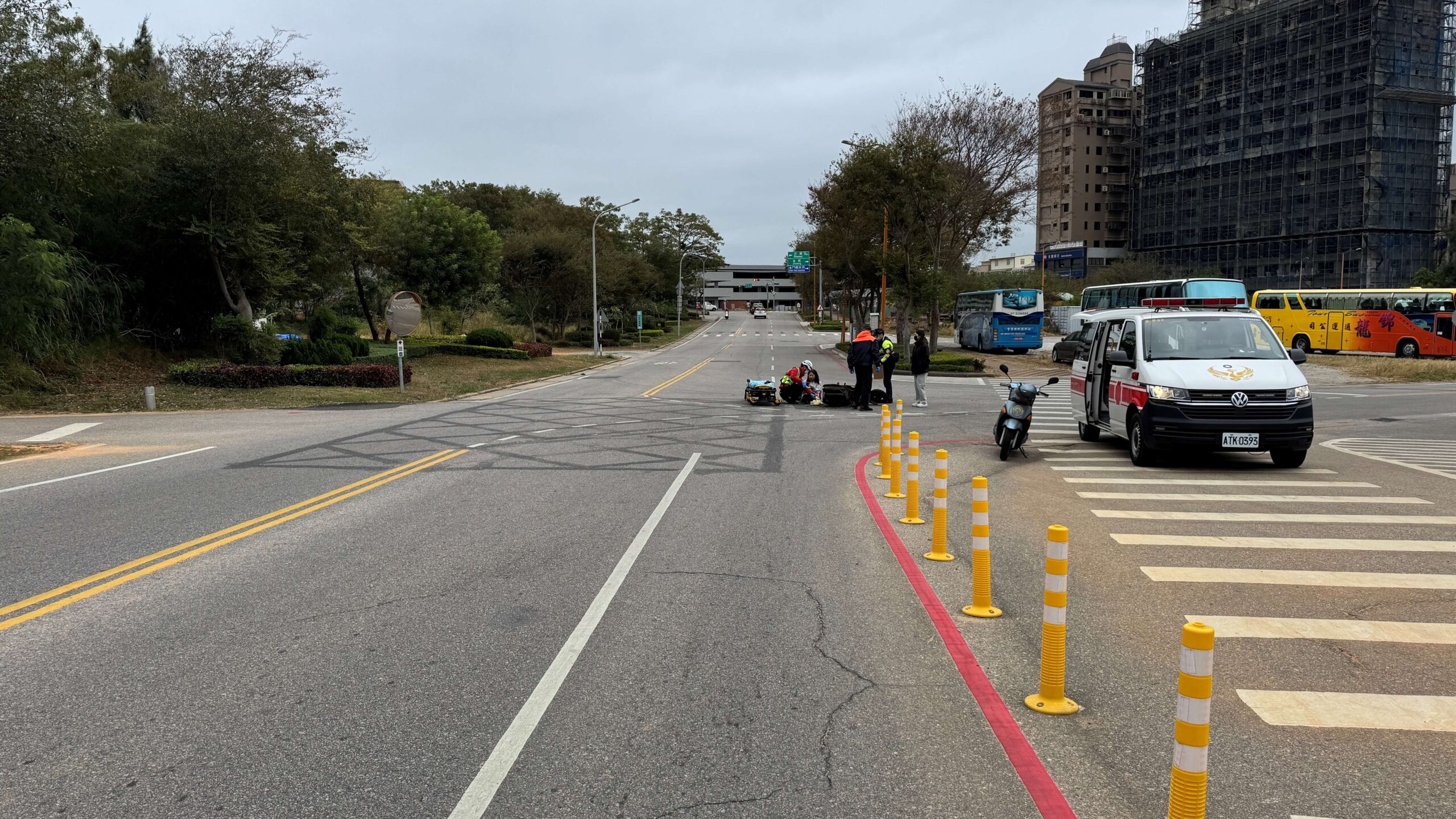 金寧鄉環島西路二段路段,今(12)日9時許發生一起交通事故,一名林姓女子騎乘普重機車沿環島西路二段右轉環島西路二段100巷行駛,與由葉姓女子所騎乘同向直行往民權路方向之普重機車發生碰撞,事故造成葉女左腳骨折身體多處擦挫傷,由消防分隊送金門醫院進一步治療。金城分局現場對雙方駕駛實施酒測,均無酒駕情形,肇事原因釐清中。