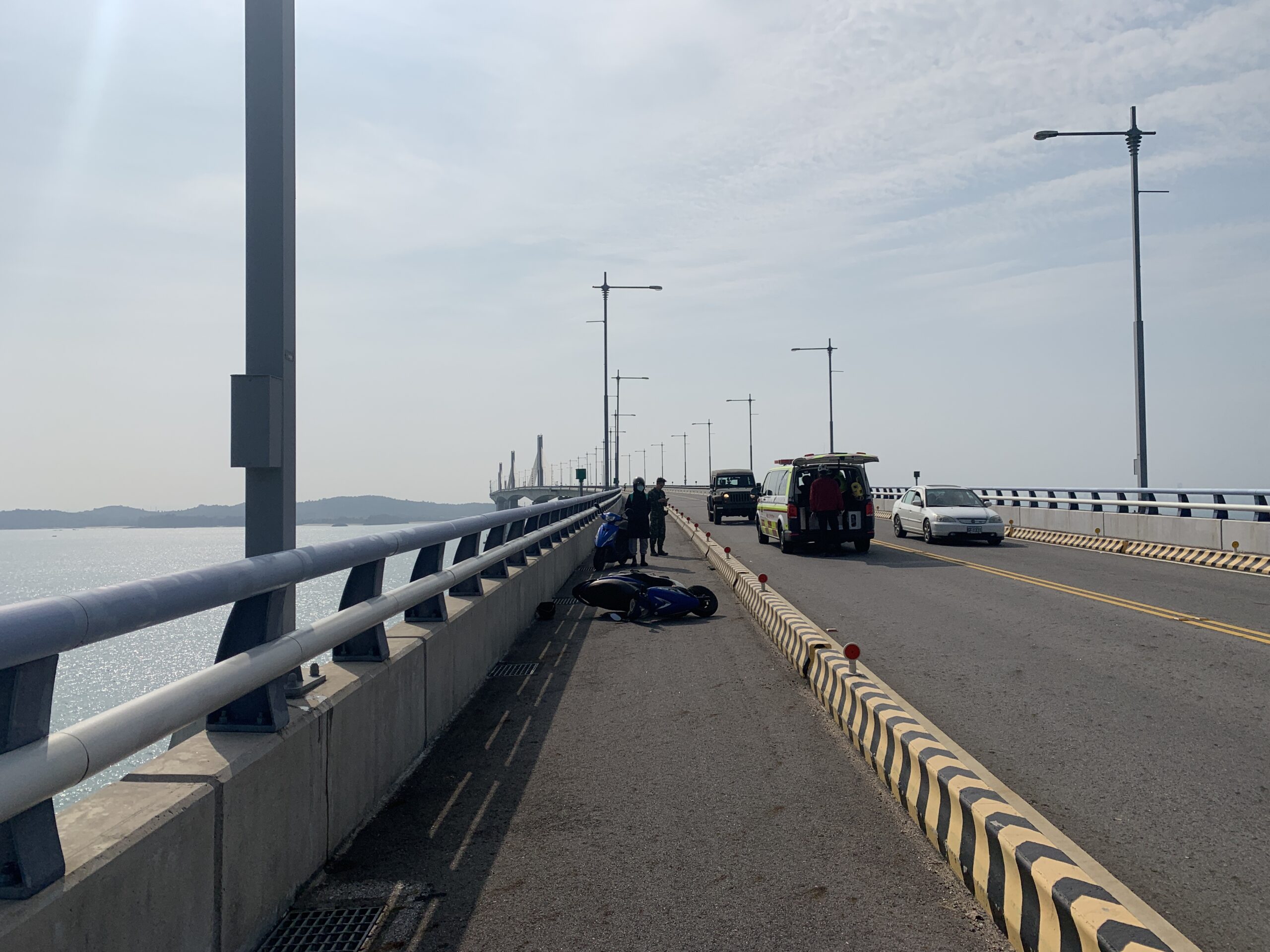 金門大橋男子自撞 金防部2阿兵哥協助交管報警/圖金城分局提供