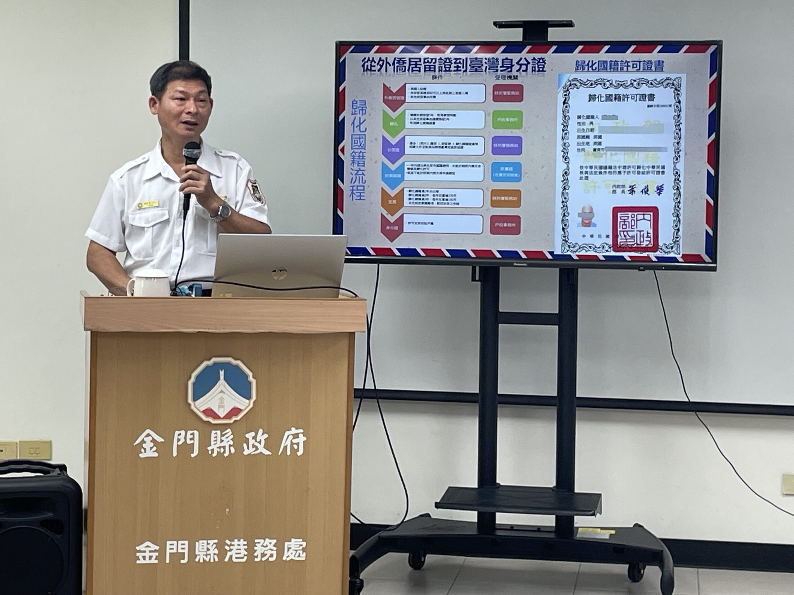 金門縣服務站視察林高慶講解相關法律規定/圖金門移民署提供